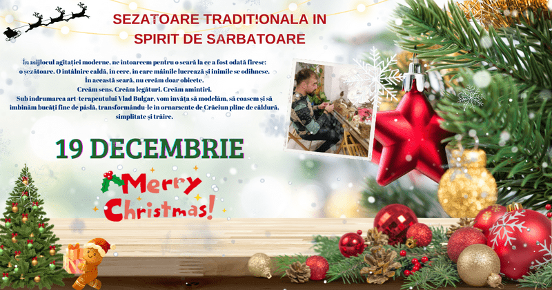 In data de 19 decembrie, Asociația Misionarii lui Padre Pio vă invită la o acțiune menită să readucă la viață farmecul tradițiilor românești — un atelier cu suflet, intitulat „Șezătoare tradițională”, susținut de art-terapeutul Vlad Bulgar.