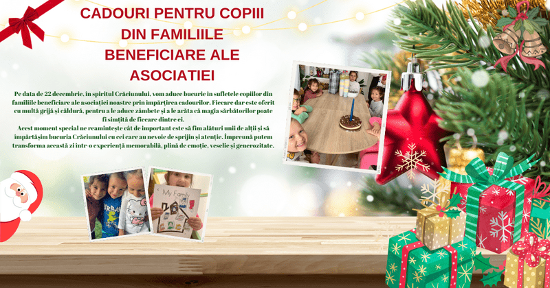 “În spiritul Crăciunului, vom aduce bucurie în sufletele copiilor din familiile beneficiare ale asociației prin împărțirea cadourilor.