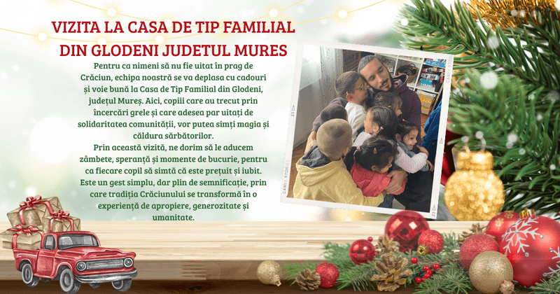 “Pentru ca nimeni să nu fie uitat în prag de Crăciun, echipa noastră se va deplasa cu cadouri și voie bună la Casa de Tip Familial din Glodeni.